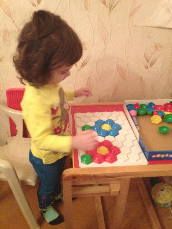 Вау, какая классная игра! Надо бы и моей такую купить! Вы уже большие, а нам только 1,5, ей наверное будет рано... Как называется эта мозаика?