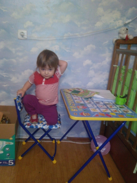 Давно, я уже хотела купить стол и стул - а то все сидит на диване - спина не прямая - и читает и рисует. Сначала косилась на пластиковые Икеевские, но когда увидела этот комплект (девочка посоветовала!) - прям влюбилась! Он с 3-х до 7 лет. У Кристи ножки до пола не достают, но это не минус - она с него прекрасно слазит и залазит! И сидит в разных позах! Но сидит - САМА! Постоянно! Возьмет планшет/книги/альбом и за свой столик! Я прям не нарадуюсь, и папа сказал - хорошая покупка. Надо будет еще на дачу, летом такой же прикупить