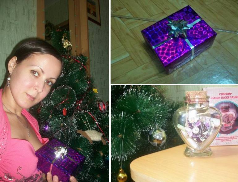 Так как основные подарки я получила еще до Нового года, хотелось еще подарочка под елочкой. В магазине Фикс-прайс увидела красивую бутылочку для пожеланий со светящимися шариками внутри и придумала, чтобы все подружки мне написали пожелания на бумажках, а в Новый год я ее открою и прочитаю. Было очень приятно сидеть под ёлкой, распаковывать вместе с сыном подарки и читать пожелания любви и счастья, удачи и здоровья. Вот так мы сами создали себе новогоднее настроение! Всех с Новым годом!
