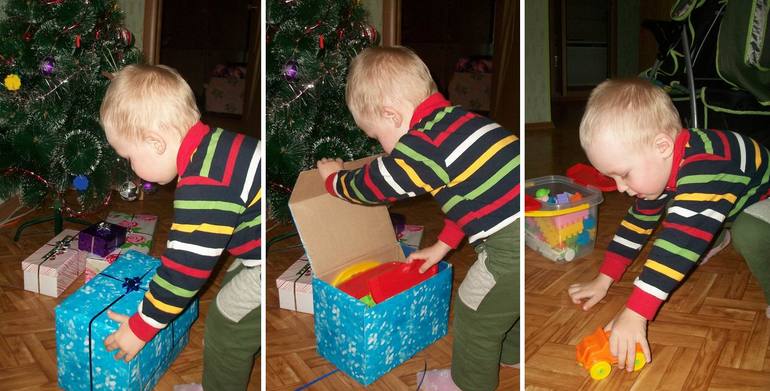 Другое31 декабря - вот и Новый год скоро наступит, а праздничного настроения что-то вообще не ощущалось, хоть мы с сыном и слушали вовсю новогодние песенки. И вот я решила, что после дневного сна сына мы будем открывать подарочки, мол, пока Максим спал, приходил Дед Мороз и подарочки принёс