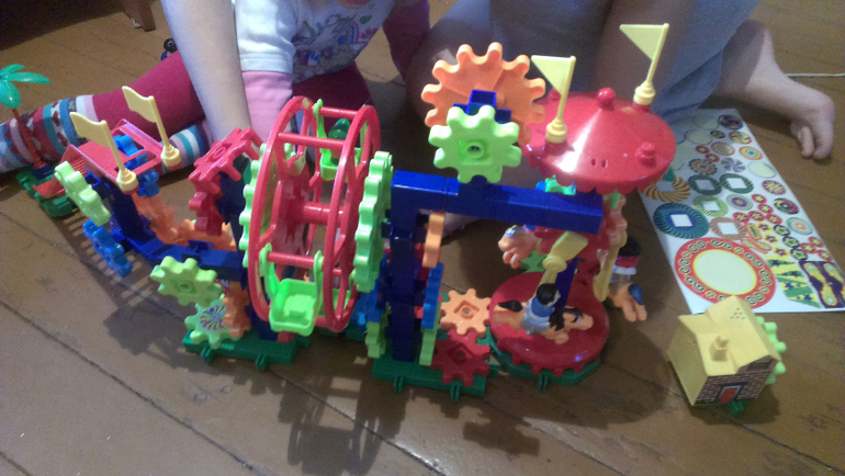 Растем и развиваемсяДевочки это какое то чудо а не конструктор,так получилось что вместо одного конструктора моя дочь на новый год получила два,один называется парк развлечений другой паровоз.Так вот детали красочные яркие шестеренки все хорошо подходят,есть два минуса,но это в паровозе вагоны отсоединяться на неровном полу,а второй ну это мелочь в хвосте нет колес и он очень медленно едет.Сразу скажу конструктор подойдет не каждому ребенку,и возраст очень важен,моя сразу поняла принцип после того как мама вместе с ней собрала парк развлечений,а потом ребенок сам сидел час разбирал и собирал ее оторвать не возможно и ей это нравиться,сегодня собирали поезд так вот можно сказать что уже мама помогала дочке и то колеса собрать немного фот я в восторге от конструктора