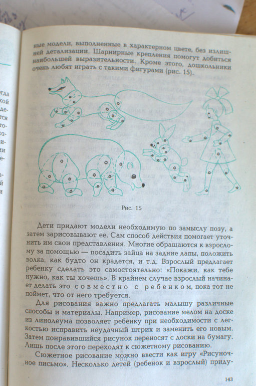 Дети придают модели необходимую по замыслу позу, а затем зарисовывают ее. Многие обращаются к взрослому за помощью. Взрослый предлагает ребенку сделать это самостоятельно: «Покажи, как тебе нужно, как ты хочешь». В крайнем случае взрослый начинает делать это совместно с ребенком, пока тот не поймет, что от него требуется,