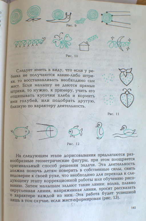 Следует иметь в виду, что если у ребенка не получаются какие-либо штрихи, то восстанавливать необходимо сам жест. Если малышу не даются прямые штрихи, то нужно, к примеру, учить его отщипывать кусочки хлеба и кормить ими голубей, или подобрать другую, близкую по характеру деятельность.