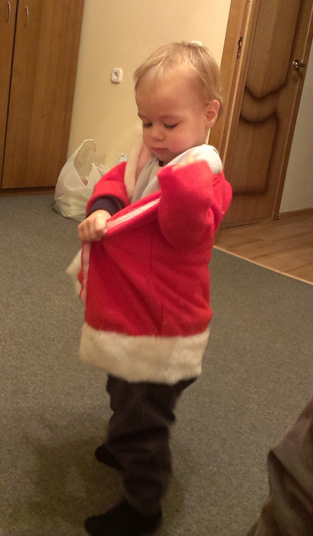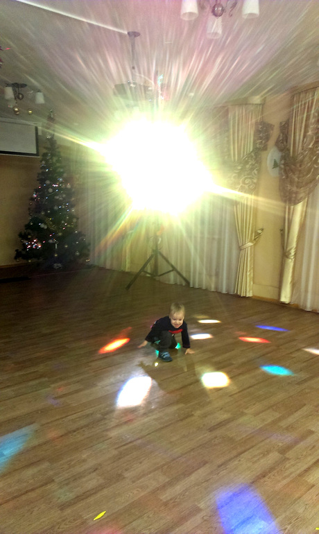 Банкет был веселый, и длился до 5 утра, но мы с Костяном ушли баиньки почти в час. У нас как-то за неделю до НГ сбился режим, Костя стал засыпать позже, и я не стала его менять. Вот мы и повеселились. Особенно ему понравилась дискотека)))