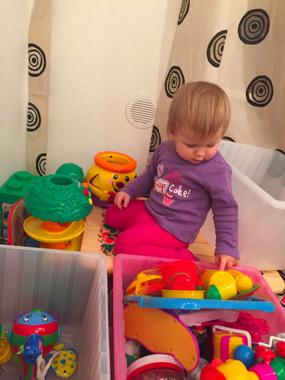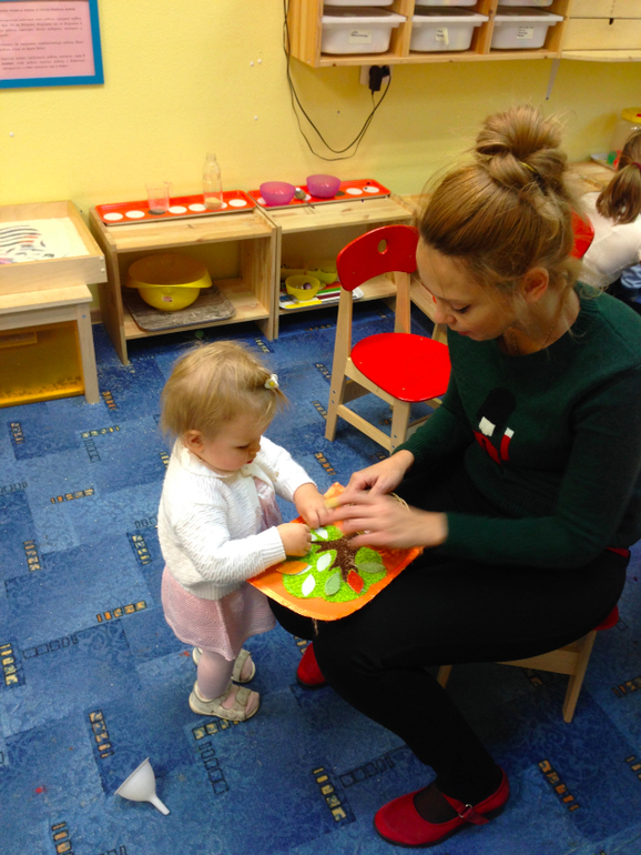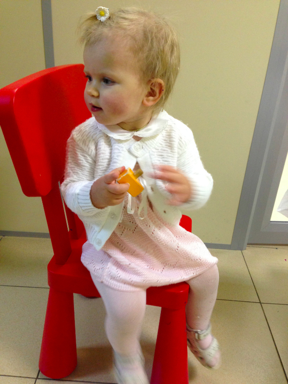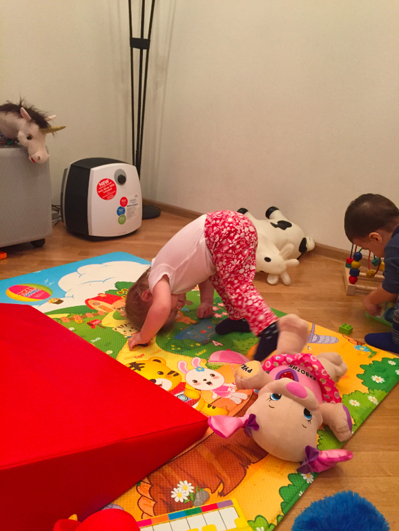 Это мы в местном бебиклубе, фото с телефона не ахти какие, т.к. Кира не уловима стала. :) Смотря на фото девочек с детишками в подобных клубах, понимаю, что наш по сравнению с продвинутыми клубами в Москве - бедноват, но возить куда-то пока Киру не готова, мы туда итак ходим лишь, чтобы общаться с детишками.
