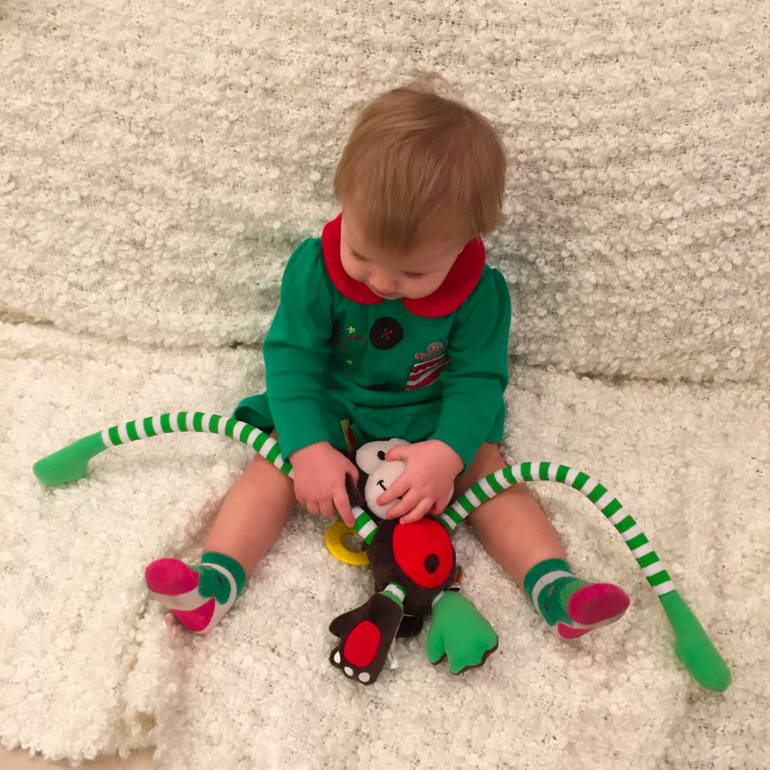 Если уж я начала с новогодних поздравлений, то сразу напишу, как мы встретили 2015 год! В этом году очень хотелось отметить этот праздник дома, в кругу семьи и непременно с Кирочкой, все задуманное сбылось и я очень довольна. Дедушка мороз у нас был в этот день воздушный, фотографии сделаны с любовью нашим папой возле нашей ёлочки, а подарки я осознанно под ёлку не положила, т.к. считаю, что не поймет моя девочка от кого они и по какому поводу, т.к. малышок она еще, масенькая) Единственное, мы приурочили к этому поводу открытие коробочки от Аистбокс, т.к. принесли нам её в самые последние деньки уходящего года и времени открыть совсем не было.