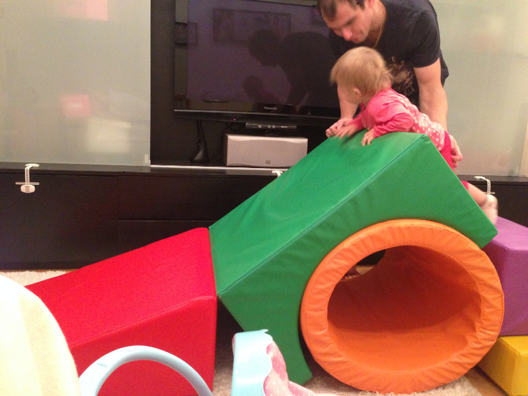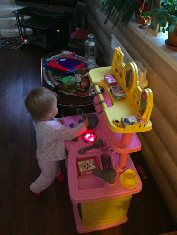 Книжки стала любить, спортивный комплекс - фаворит пока, очень любит танцевать с МИМИ, показывает как мишка ходит и как первобытный человек (на полусогнутых ногах - ржака) Стараемся снимать с мужем больше видео, такие корки мочит.