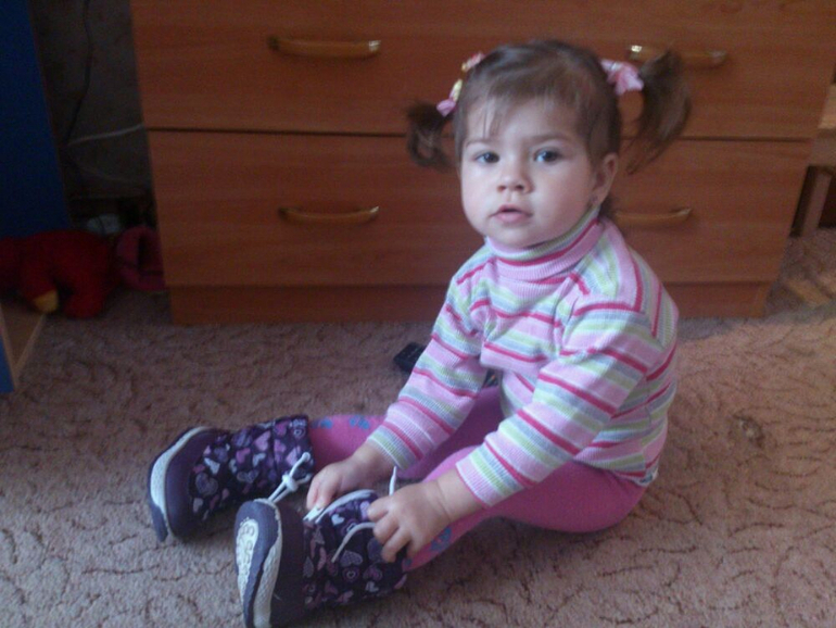 у и как, получается "сапог на голову"? Хи-хи-хи!!!!!!! у нас, если что-то не натягивается, сразу крик!!!!! так вообще все правильно одевает — шапку на голову, перчатки любит одевать, в сапогах часто по дому ходит) Обожает одежку сестры, мерит ее пока она в садике)))