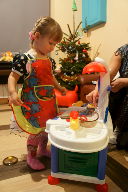 Она не умеет играть одна. необходимо быть рядом и участвовать. если я чем-то занята, она просто начинает вынимать все игрушки, разбрасывать. Максимум, что она может - это "почитать" книжки. А в некоторые игры/игрушки она не хочет играть как я ей показываю, рассказываю.