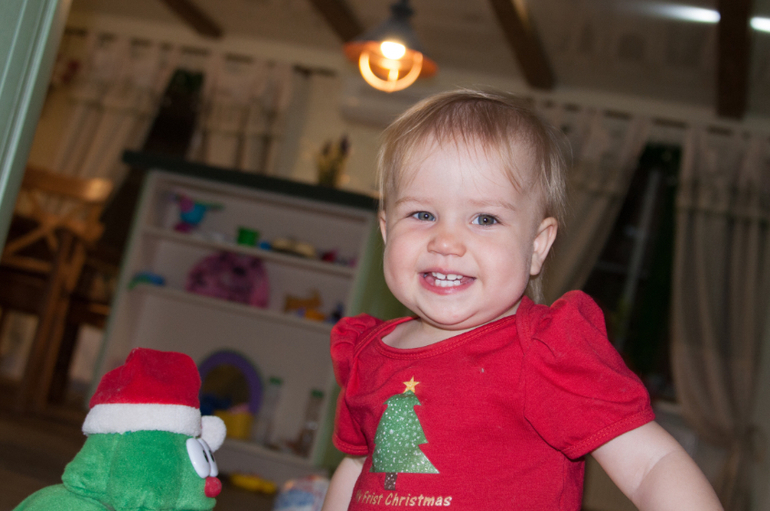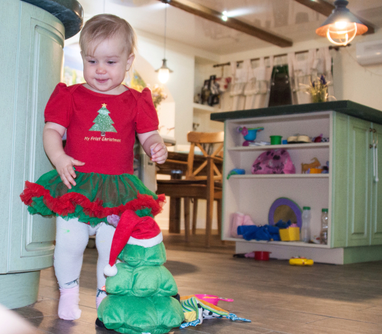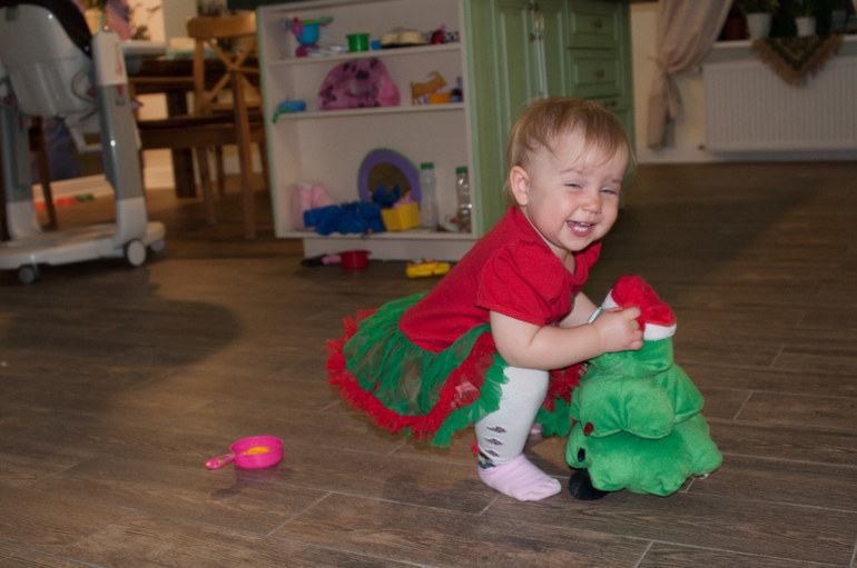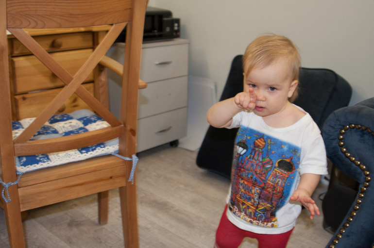 Растем и развиваемсяОбо всем по-немногу. Моя уже совсем взрослая барышня очень любит зеркало и общение с ним на интересные интеллектуальные темы. Называет себя Аенка, раньше говорила Ира, как зовут одну из кукол Говорит очень много, уже даже не записываю новые слова. Некоторые - почти правильно. Некоторые - как бог на душу положит. Из смешных- бадап - банан, манима - машина, манишка, мочалка. Почепа - перчатки, спасибо, печенье. Л и Р пока не в почете. Йога-йога - делаем простые упражения. Пикипи - прикрепить. Багобаг - бигуди. Считает до пяти: яз, да, ти, читии, пать... Может до десяти, но редко. Мелко пакостит, капризничает, балуется, но без перегибов. Кукол тузит и строит. Грузовики и машины - возит. Любит рисовать маркерами калямаля на бумаге, плавно перетекая на пол, покрывало, стены. На четвереньках заползает на лестницу, если тихо - ищу ее там. Или в ванне - разбирает ящик. Или в спальне - прячется за кроватью. Нрав веселый, легкий, общительный. Сначала в гостях и с другими людьми ведет себя тихо и чинно, потом разыгрывается и голосит. Писает с милой улыбкой рядом с горшком. Ест малышковые пюре, блюет всем чуть более чем гомогенным. Стала грызть сушки, сама пить из кружки, периодически выливая на себя, черпать еду ложкой и отправлять в рот, уделываясь в усмерть. Когда что-то надо слышится грозное: дать, пока не получит желаемое, не успокоится. Переключать работает все реже. Когда кто-то чихает, говорит будь. Может артистично плакать, аж жалко местами. Танцует армянские танцы с широким разведением рук под речитатив: дигиди-дак. Много смеется и радуется жизни по поводу и без. Прям встает и сразу радуется, когда я спать еще хочу. Когда папа приходит с работы, начинается буйство и сумасшествие - я видать настраиваю на более тихий лад. Есть зависимость от видео про себя любимую, боремся. На улице стала убегать резвенько, с прогулки часто приходим по уши в грязи, так как падаем плашмя и всем телом, обязательно в грязь. На следующий год - только хаки комбезы. Любит читать. Книжек у нас уже море, половина латанных, так как обращаться аккуратно не умеем. Пытаюсь играть в девочку - вешать заколочки и бантики, но голова - святое, все срываем и предлагаем маме поносить. Спим днем 1,5-2. Ночью - 10, реже 11. Кормимся еще, поэтому спим фигово, еще и гроздь зубов лезет. Ходим в бас, с мамой, а поэтому в удовольствие. Любим мячики, папины футбольные гены. Лепим из пластилина, рисуем красками круче Малевича. Дочка крайне любимая, поэтому кажется мне самой красивой, умной и развитой, эмоциональной, ну а кто убедит меня в обратном? Примерно 11 кг. 78 см.
