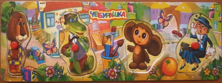 Предыстория: мы не могли выйти из дома без маленького Чебурашки, а в варежках его неудобно держать, в общем, уронила его Диана в щель возле лифта, когда выходила. Вот такой был Чебурашка, из рамки-вкладыша: