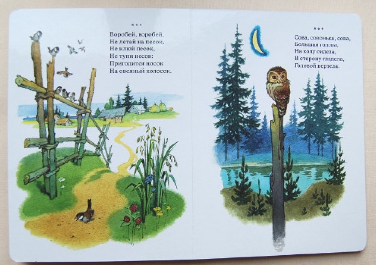 Издательство «Нигма» по сути воспроизвело сборник русских песенок, появившийся в 1978 году. Однако перед нами не просто книжка, а отлично изданная книжка-картонка. Став любимицей малыша, она прослужит ему долго, не порвется и даже не запачкается: с глянцевых страниц легко стереть следы грязи и еды. Сначала слушая в мамином исполнении, а со временем и повторяя любимые строчки о барашках и зайке, воробье и сове, Николеньке и Ермаке, ваш ребенок запомнит их надолго и, возможно, передаст своим детям.