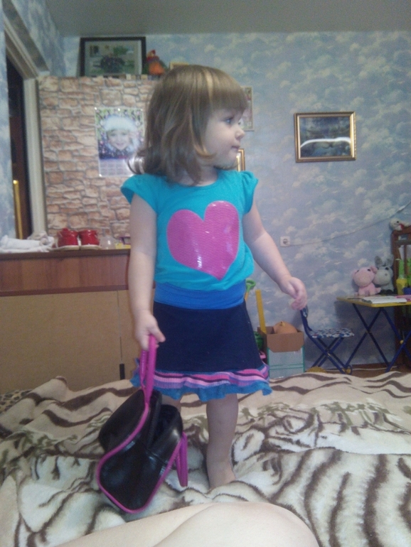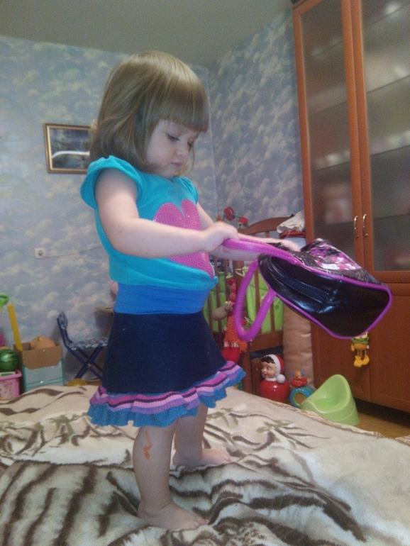 Вечером зашла мачеха моя, принесла нам еще немного одежды (на лето), и сумочку - весь вечер с ней носилась, хочу на днях купить ей - детской бижутерии (бусы!), пусть модничает)