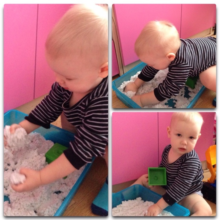 Например, летающая фея, в которую, мне кажется, он влюблен) Запускаем по несколько раз на дню. На кухне Тефаль готовим все: от игрушечных овощей до машинок, в коляске и кроватке катаем и укладываем спать кукол, поем им: а-а-а! Из последнего освоенного - кинетический песок. Еще недавно не давали ему и убирали повыше, потому что он сразу начинал разбрасывать, через плечо кидать. А ему так хотелось, показывал на коробочку, плакал, просил дать ему! И на днях стал просить опять, я решила попробовать, оказалось ребенок созрел) Все чинно, благородно) Копошился, кряхтел, очень старался) Поначалу даже выпавший песок подбирал и закидывал обратно. Теперь каждый день играем: и руками, и формочками, лопатками-грабельками. Вчера викиных принцесс из киндера закапывали и раскапывали. В свободном доступе теперь песок стоит, он один не трогает его, меня зовет. и уже как-то и не так нужен стал) Запретный плод сладок))