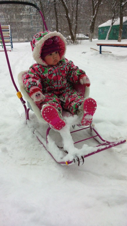 Баловница! Как-то резко повзрослела! На санях как на троне) А мы санками в этом году только один раз воспользовались)