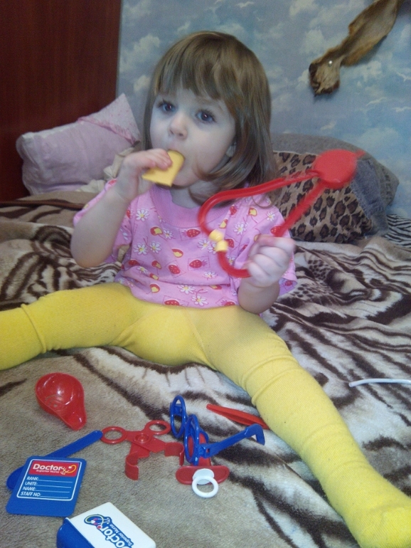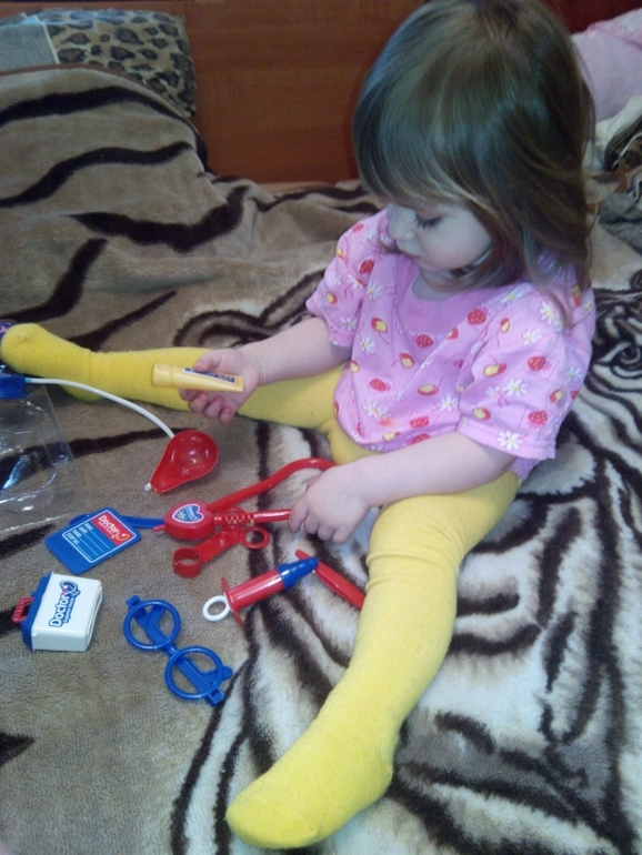 Хоть и писала, что больше не буду пока покупать мелкой игрушки - не сдержалась, купила набор - доктора! очень сейчас актуально - как раз по врачам бегаем) учимся лечить игрушки!