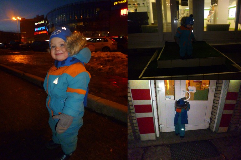 Но это тоже ужасно,убегает,лезет на все ступеньки,заходит во все магазины,бежит к машинам.А я за ним несусь с коляской)