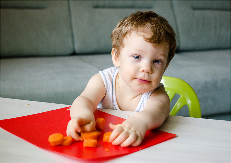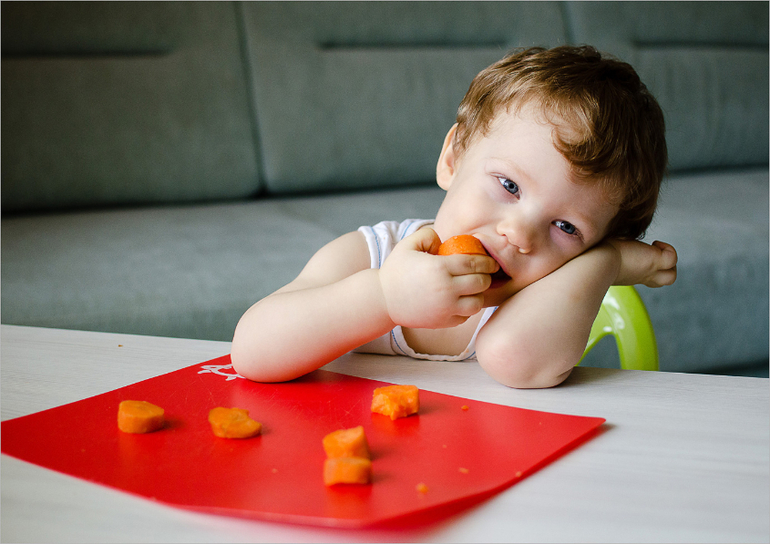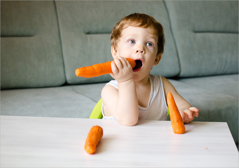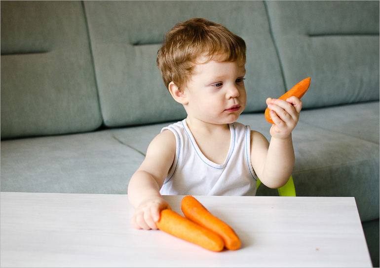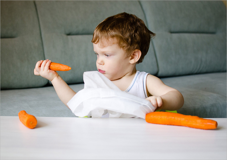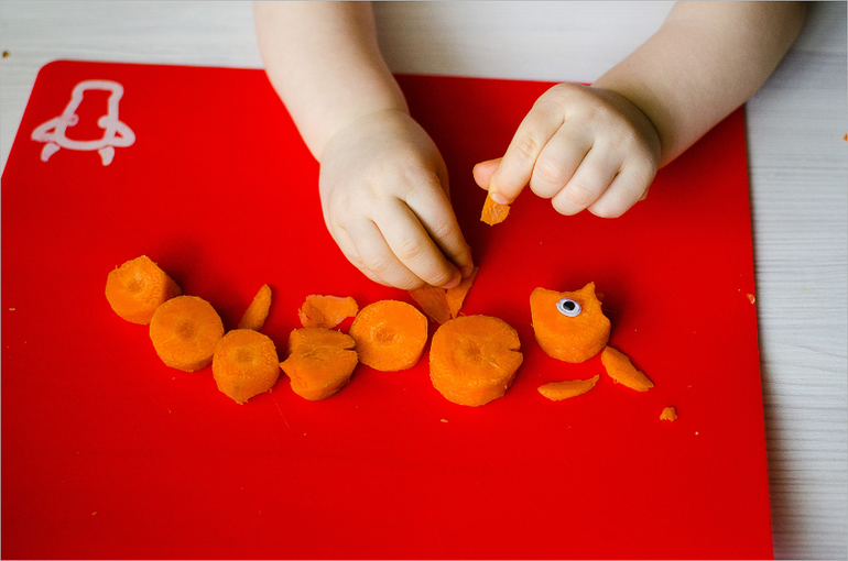 Во время вкусного перекуса мы обсудили цвет, форму, размер морковки. Развили тактильные ощущения, мелкую моторику.