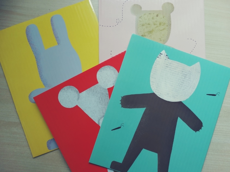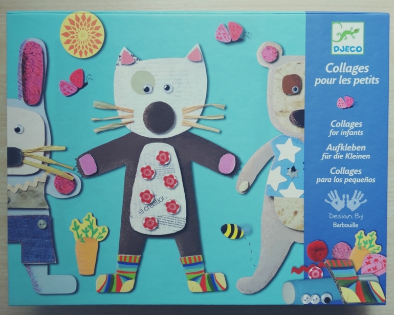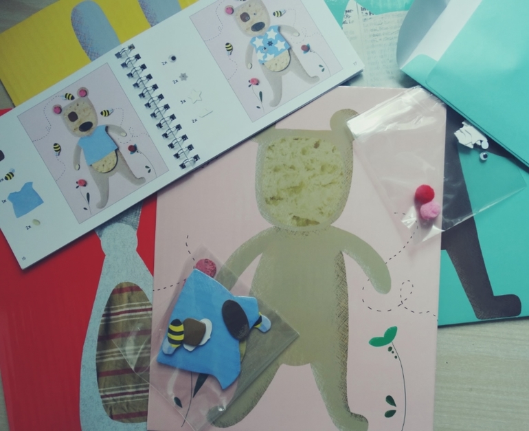 4 картонных картинки,4 конвертика с элементами для аппликации,книжечка с образцами и клей-карандаш!Качество мне очень понравилось!