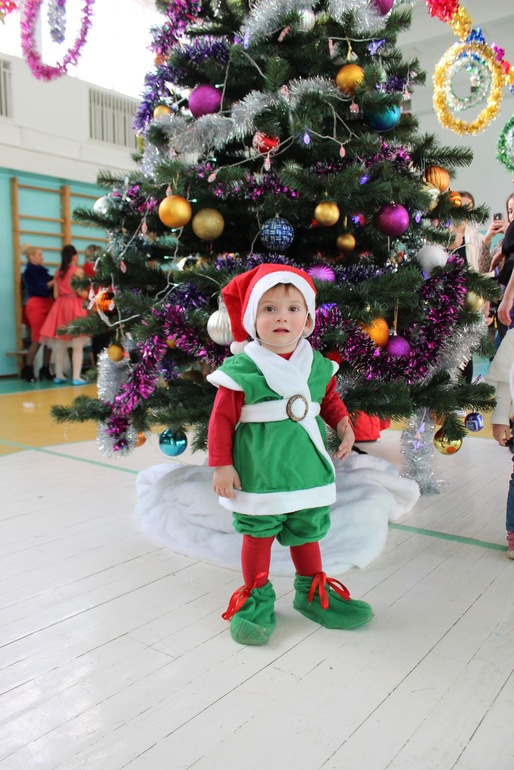 На Новогоднюю елку на работе мы пошли в костюме ельфа!Как-то все вокруг мне говорили,что он так на маленького гномика похож,так что вопрос о том кем мы будем отпал сразу и бабушка сшила нам костюм!