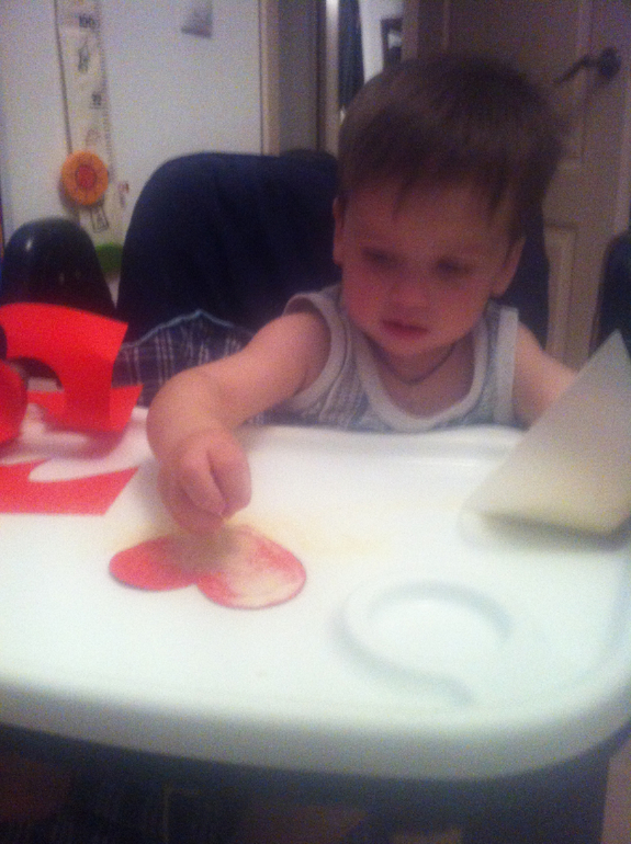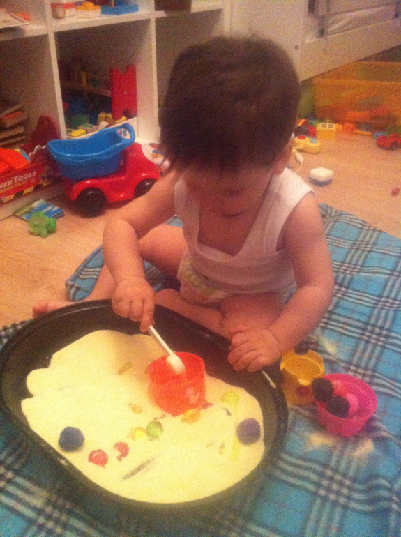 Очень мне хотелось играть со льдом и сынуля тоже оценил! Вообще он у меня не любит пока рисовать, больше лепка идет!Я сначала переживала, пыталась все время подсовывать краски и карандаши,но его интересовали минут 2 не больше, поэтому открытки на праздники нам давались с трудом!А вот валентинки с манкой мы делали с удовольствием!Сейчас я просто положила карандаши на мольберт и решила, что как время придет сам будет брать и рисовать!