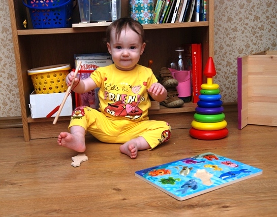Любит очень поюще-говорящие игрухи. Книжечки любит, сидит листает, особенно те, которые мы с ней уже смотрели. Нравится, чтобы я пальцем показывала и называла. Бывает немножко чтение высижывает на коленках.