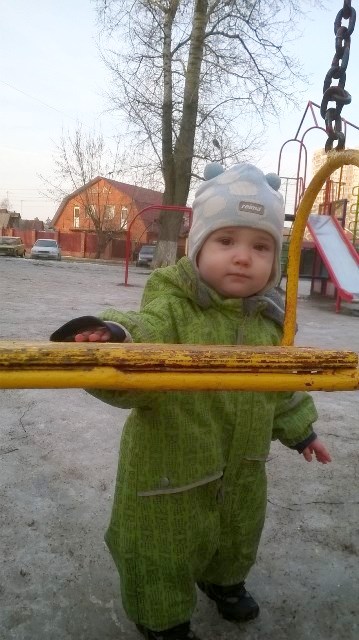 Ногами уже по улице ходит как в демисезонный комбез переоделись. Очень живность на улице привлекает, прямо оторваться не может.