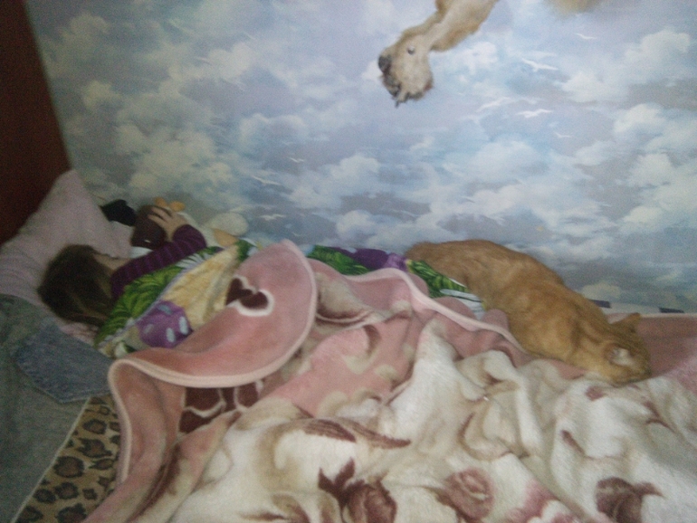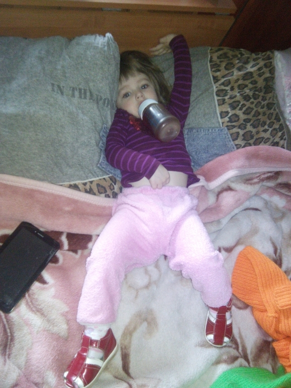 Дневной сон! Так с бутылочкой и спим! Кот - пригрелся рядом!