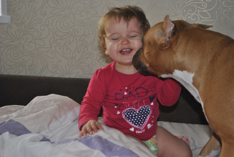 Очень любим играть с нашей собакой, называем ее Сефя (собаку зовут Стефа).Пытаемся ее воспитывать, кормим)