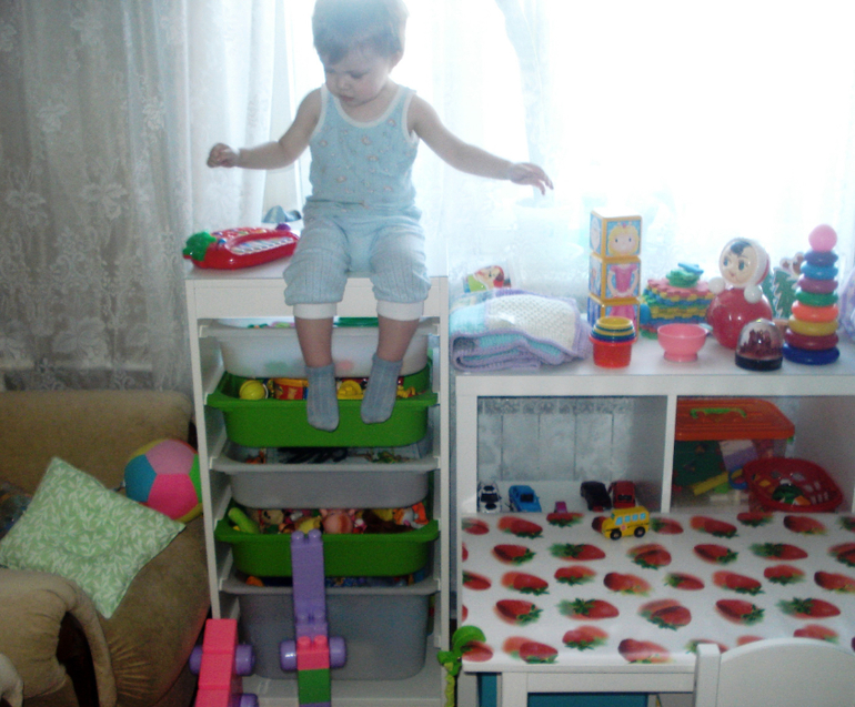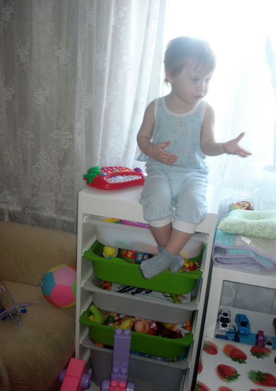 Сначала подкашивались, теперь уже не так пугаюсь. Но бороться с этим не получается — ни уговорами, ни руганью, ничем((( В день раз по 10-15 залазит куда-нибудь... Только отвернешься на минутку — он уже влез... Стою рядом, страхую, объясняю, что можно упасть, снимаю на пол, пытаюсь отвлечь чем-нибудь. Такое ощущение, что инстинкт самосохранения отсутствует у ребенка напрочь)