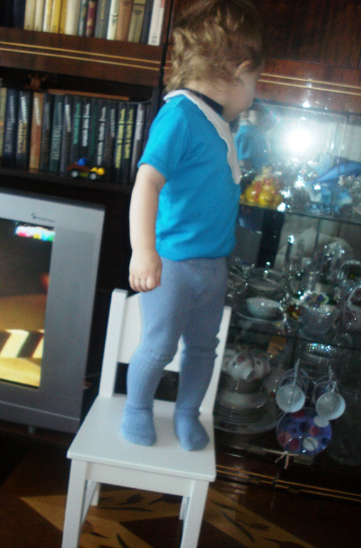 Стулья и табуретки, столики - журнальный, детский, компьютерный и обеденный, стеллажи (икеевские), спинки и подлокотники диванов, подоконники... Раньше - пугалась, кидалась снимать, потом - страховала, объясняла, втолковывала, сейчас - наблюдаю... (но одного не оставляю ни на минуту
