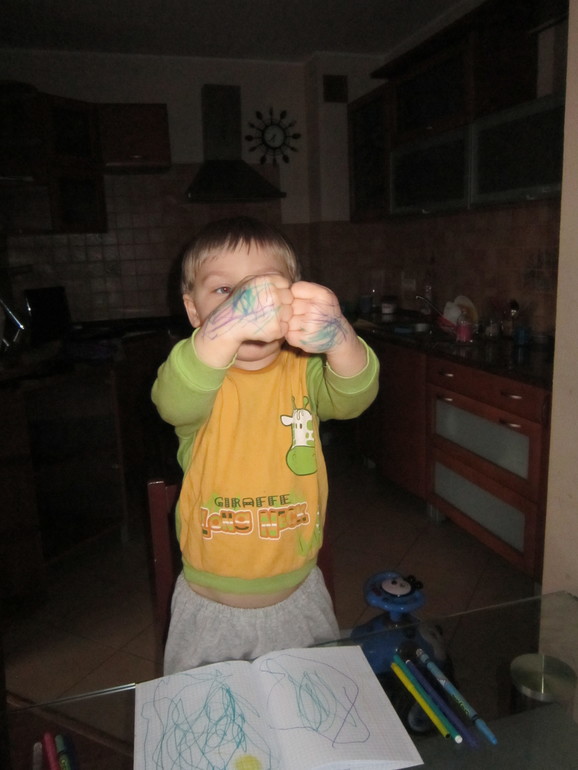 и пускай надо будет отмывать , но зато сколько радости .Он еще и мне предложил разрисовать руки !!!!