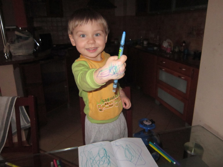Вот давайте радоваться вместе с ними .На днях Иван рисовал , посмотрите какой он доволен