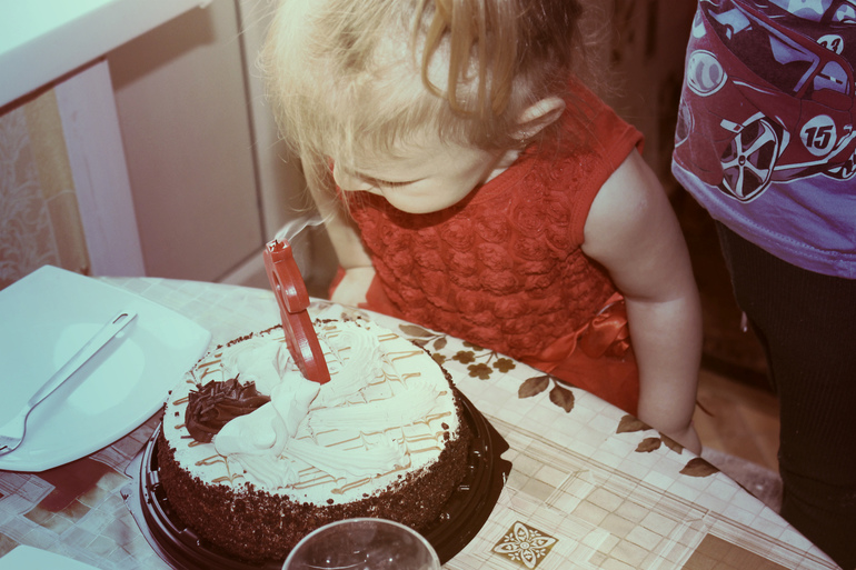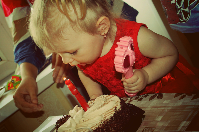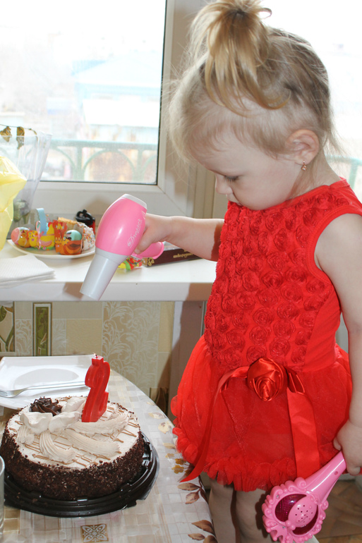 Ну как бы первый раз задула эту свечку Аришка феном)))))