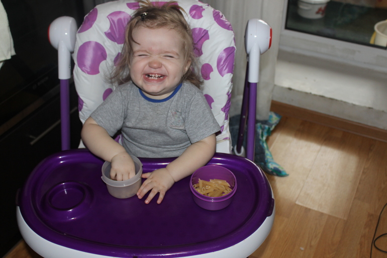 ей 1.5 года,пытаюсь объяснить,вот в эту баночку крупные макарошки в эту мелкие,нафиг надо лучше все на пол высыпать.