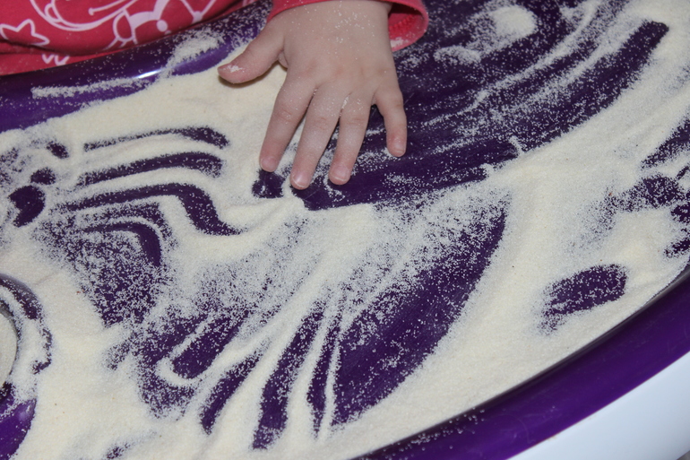 Тут конечно или терпение или самой чтобы нравилось. Картины песочком со старшей делала. С младшей тоже, но меньше — толи пока не доросла и все впереди толи еще что. У нас песок кинетический. Как разворачиваем, даже кошка присоединяется. И пылесосить потом приходится ;) хотя пылесосить приходилось всегда после таких игр :)