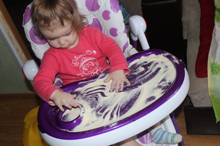 Это мы играли в 1,8. Все прошло на ура и при этом ребенок сразу понял что от него хотят и ему было интересно, он рассортировал все макароны несколько раз) при этом с едой играть не начал) с более мелкими крупами играет рассыпая по всей кухне, но так ему нравится, а мне не в лом потом пропылисосить ( но кухня большая 15 метров и есть много свободного места). Если это нравится ребенку, а судя по фото у Вашей дочери дикий воссторг, то почему нет, просто пусть играет так как хочет, а потом и рисовать будет и сортировать. Мое мнение, что все должно быть без насилия и деть сначала должен познакомиться с материалом, а они это делают в своей игре. и главное что бы с мамой.