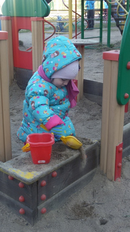 Гуляем много , утром 2-2.5 часа и вечером 1.5-2.5 часа. Компания все та же , одни пацаны . Любит горки , просто бегать с коляской , в песке возится подолгу . Любим рисовать мелкам, а также любим когда мама рисует геометрически фигуры , а София их показывает (знает круг , квадрат , треугольник , овал , ромб и сердечко ). Последнее правда не относится к геометрии , но все же ))))).