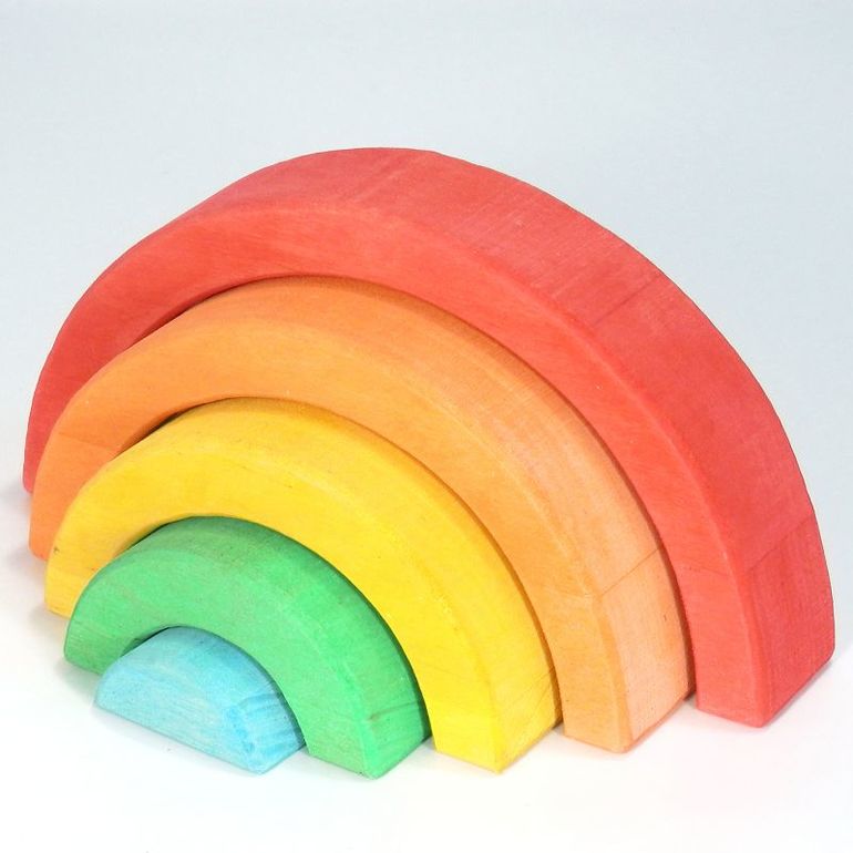 3. Пирамидки. Это и классическая версия, состоящая из стержня и разноцветных колец, и множество нестандартных форм. Например, наборы животных, которые можно устанавливать друг на друга в виде растущей пирамиды или радуга, состоящая из нескольких полукруглых частей. Деревянные пирамидки знакомят ребенка с формой, цветом и последовательностью.