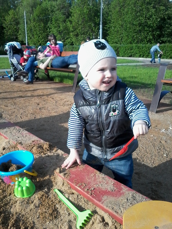 Идем на прогулкуПервый поздний опыт полноценной песочницы с кучей детей. Сыну 1,1. До этого конечно уже гуляли на площадках и с детишками пытались знакомиться, но все, что близко к дому, то дети намного старше, то гуляем мы там не в то время, то народа нет. А тут все у нас совпало, нашли клевое место недалеко от дома, да еще и выходной и сын уже все-таки уверенно топает ногами. Короче забрели мы сегодня в клевую песочницу с кучей детей от года до 3х. Кайф, все как я хотела, чтоб общался ребенок, а то он кроме меня и папы никого не видит.