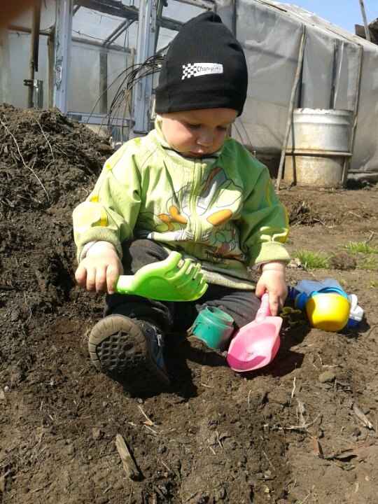 Серьезная мордаха))) На даче Костян вообще кайфует)))) Свобода, бегай не хочу, уже снес маме половину грядок