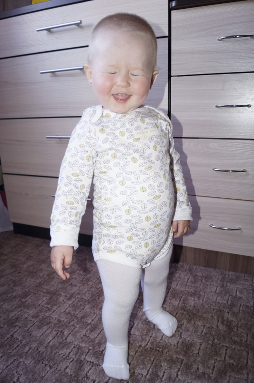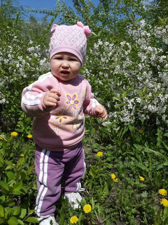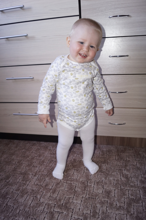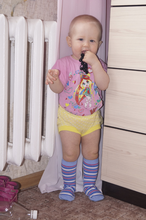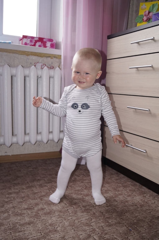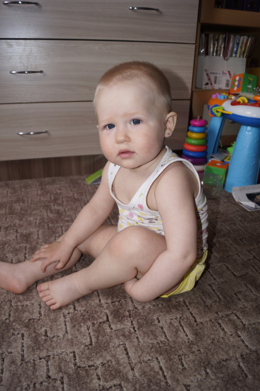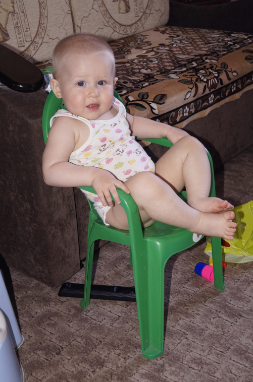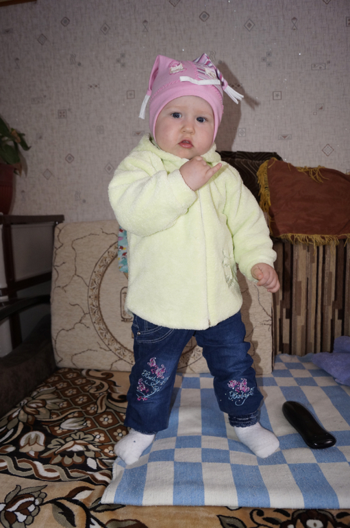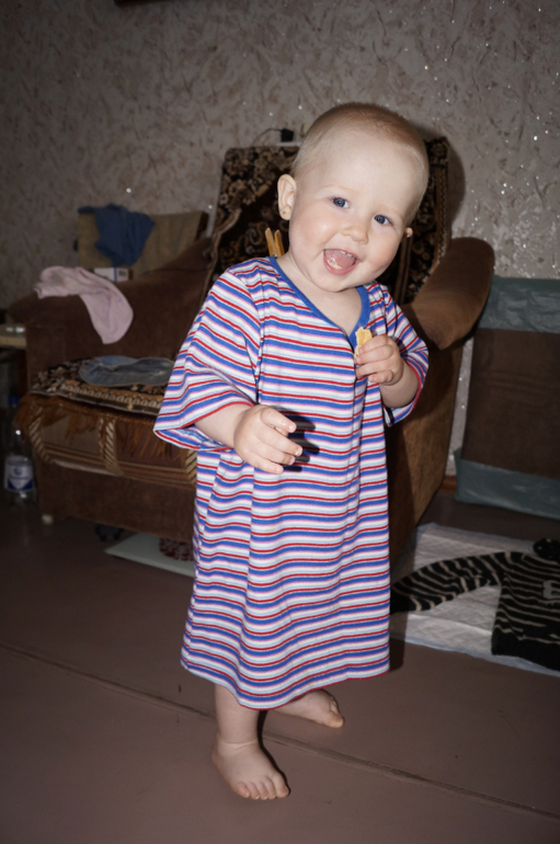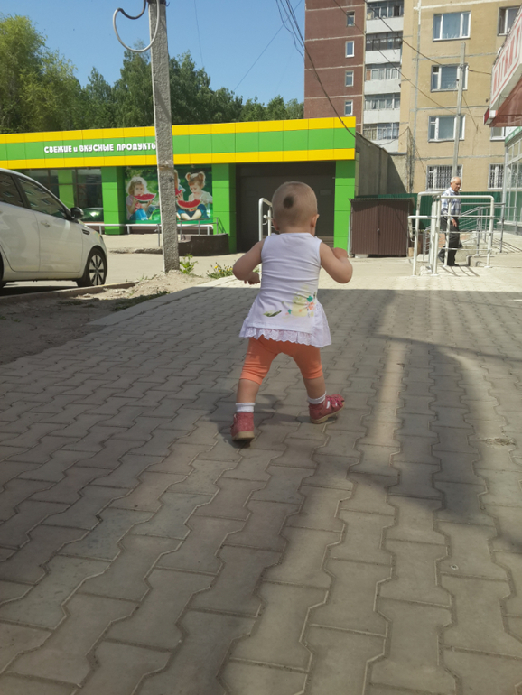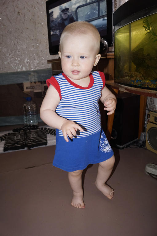 Счастье растёт не по дням, а по часам. Бегает как вертолёт, тащит всё со стола. Таскает вещи из комнаты в комнату. На улице бегает очень уверенно. Почти не падает.