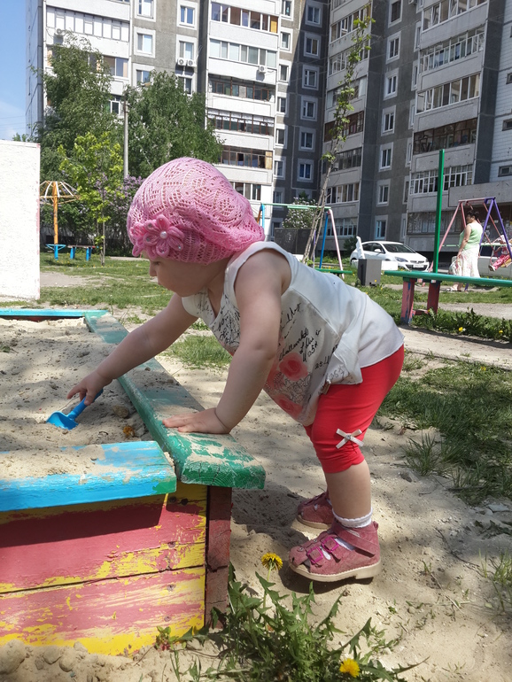 15. на улице ходит сама. Руку вырывает. И если нужно забраться, допустим, на бордюр, то я предоставляю ей право выбора: она либо даёт мне руку и мы забираемся на бордюр, либо решает этот вопрос самостоятельно - ставит руки на бордюр, переносит по очереди ножки на него и встаёт. Если на улице пачкается, то не ругаю. На то они и дети. Главное, что самостоятельно находит себе занятие и очень этим довольна.