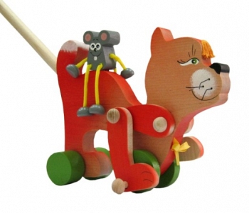 По приезду домой достала ему нашу каталку "Храбрый мышонок".В предыдущих постах я рассказывала про нее. Сегодня он решил не возить ее, а просто посидеть, детально рассмотреть, вопросительно спрашивая: «Ки?». Детишки! Какие же они все-таки изобретатели! Нашел коту новое применение - развивает тактильные ощущения: теребит тканевый шнурок, стучит погремушкой по деревянному телу кота, как по барабану и таскает его за торчащие пластиковые усы.