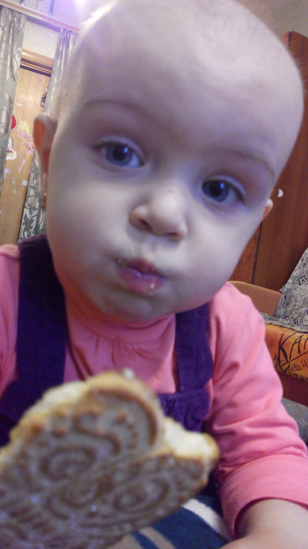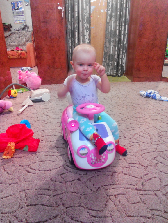 С одной стороны она самостоятельная,но с другой постоянно я ей нужна и должна быть рядом,последнее время и с рук не слазила,и держась за халат ходила,и постоянно сидела на руках.Сейчас ,А точнее может последние 2 недели как стало проходить,либо проскальзывает через раз. Любит танцевать,пищать,кричать,ругаться при этом трясет пальчиком типа "но-но-но" либо когда говорю нельзя,она мне так пальчиком показывать.любит любоваться перед зеркалом,воображает.Иногда она серьезная,иногда хмурится,но чаще всего улыбака и хохотушка. Очень любит старшую сестру!И очень любит целоваться открыв рот и напускав слюней на лицо))))