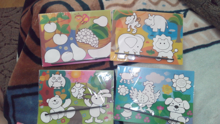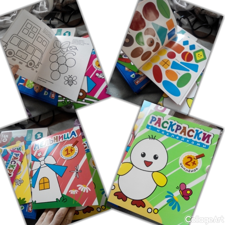 раскраски с наклейками еще не пробовали, ждут своего часа