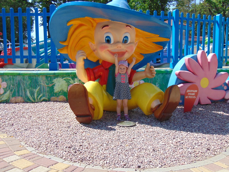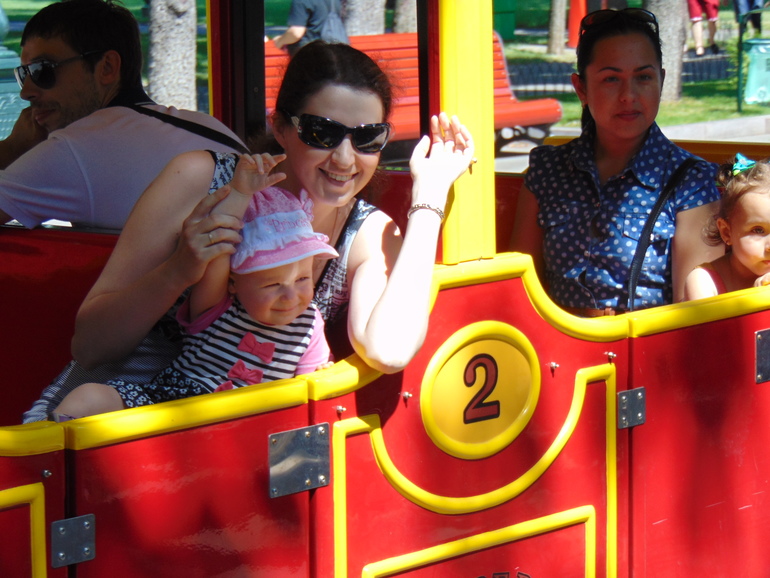 Последние фото - это мы в нашем красивом Парке Горького. В этот раз мы катались на паровозике и летали на слонах!