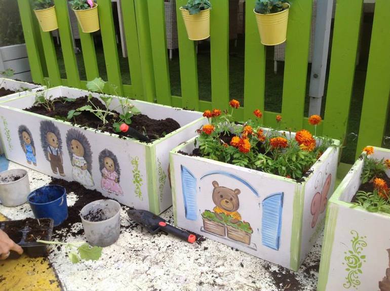 Правда мне пришлось Настю удерживать постоянно, она норовила принять участие в посадке цветов и в конкурсах. Но только в итоге морковку потаскала. А потом устала и больше наблюдала у меня на ручках за конкурсами.
