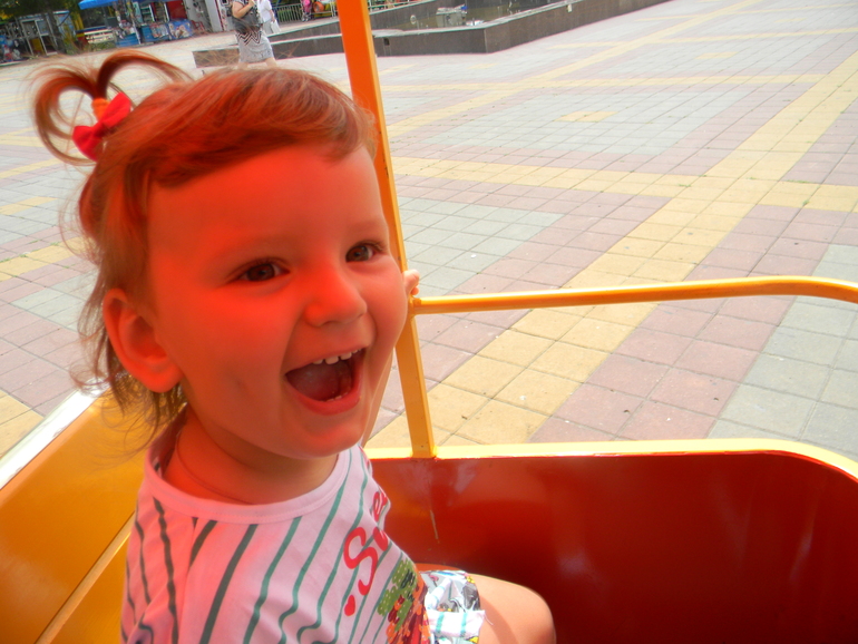 Ближе к обеду мы отправились в парк. Там Арина каталась на паровозике и каруселях
