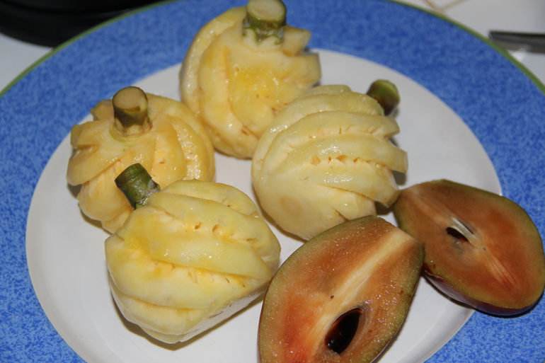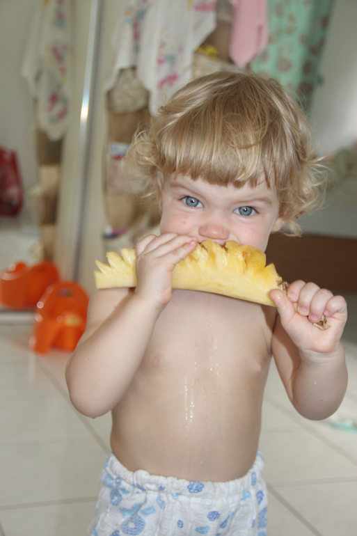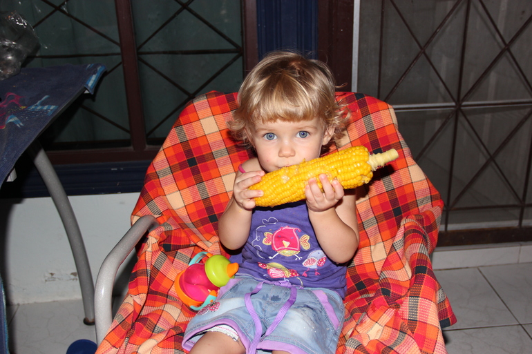 На закусочном столе: свежие нарезанные овощи и фрукты. Пока мы ели сами, Алиса получала две-три тарелочки нарезок. К нашей еде интереса особого у неё не было, как-то дали что-то лизнуть на пробу, больше не хотела.